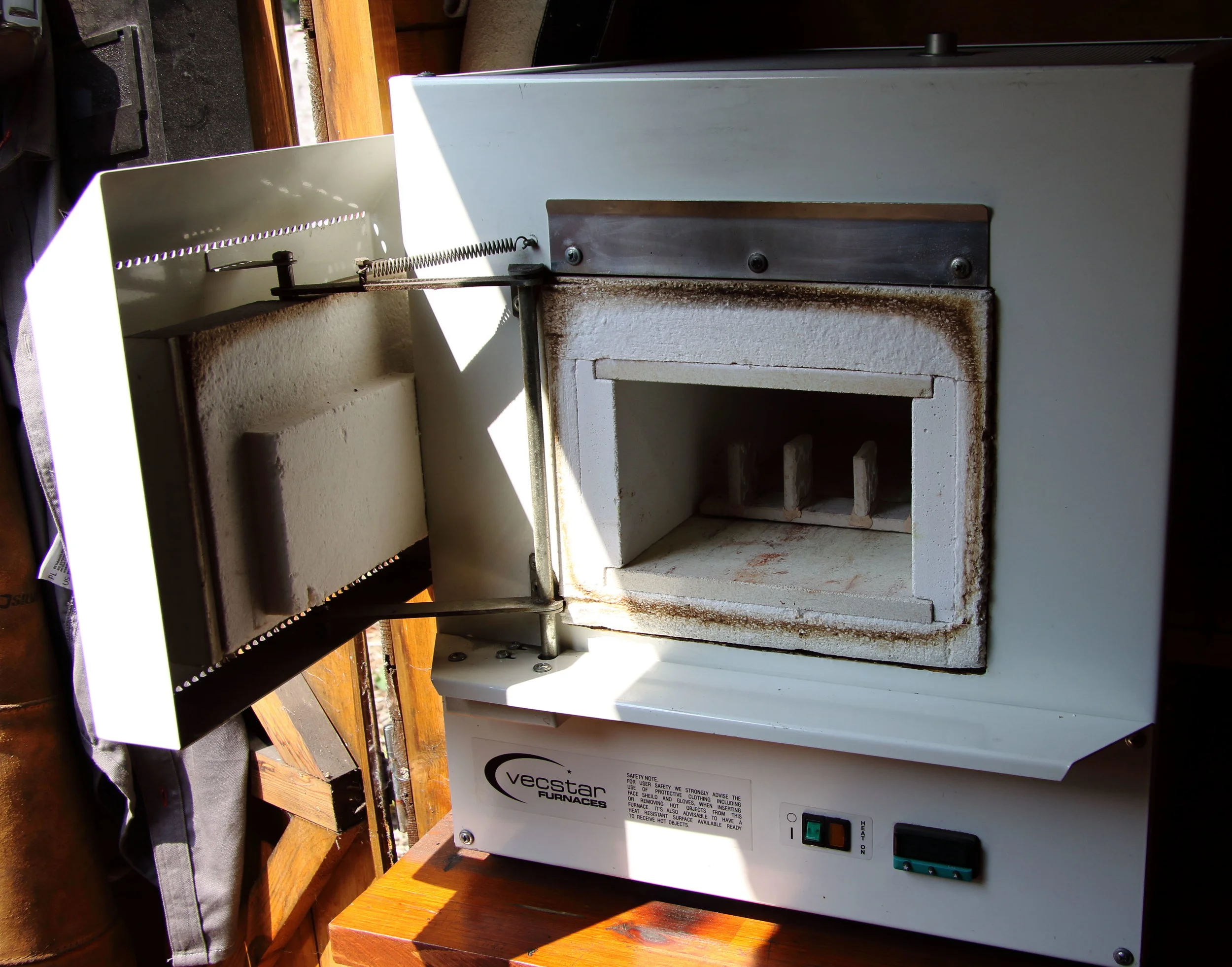 To properly heat treat a blade you need a combination of knowledge of the materials and the ability to bring the blade to a very precise temperature. Vecstar is a UK company that makes specialist furnaces and ovens for laboratories and specialist manufacturing processes. Each furnace is custom built to suit the customers needs. Our furnace has a controllable temperature range of about 450 - 1200 degrees C and is able to treat 8 blades of up to xx cm at a time.