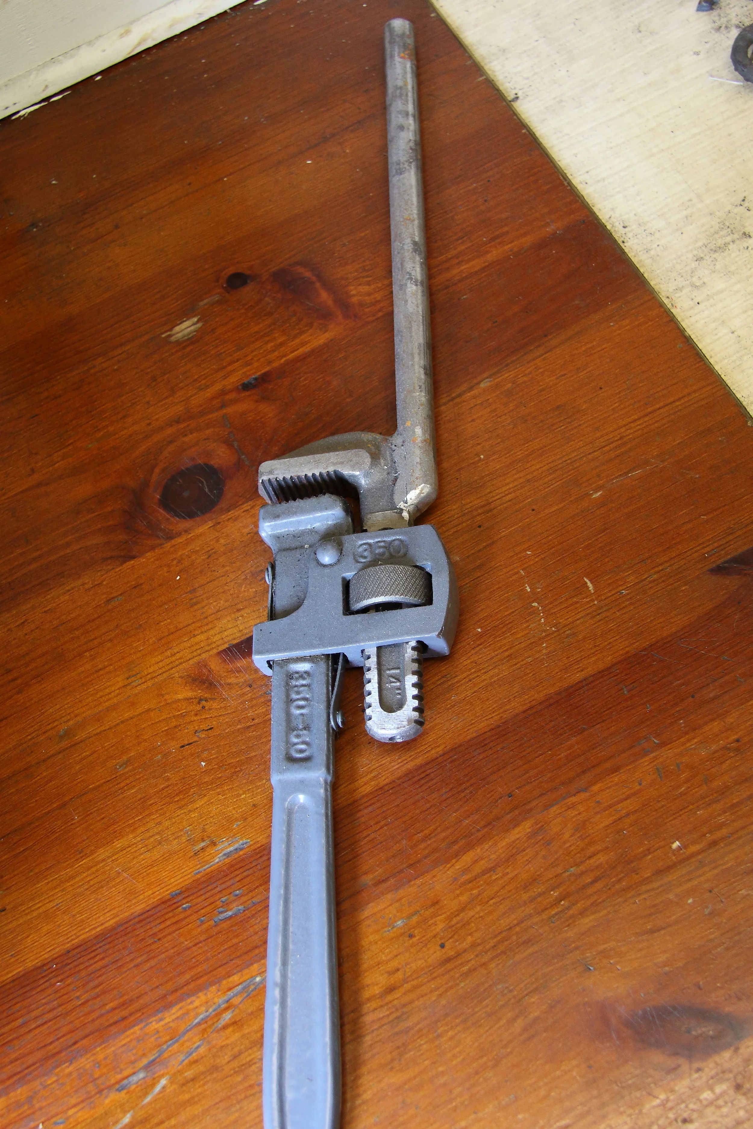 This is just any monkey / pipe wrench with a bar welded on so that when your twisting hot metal you have far more control over the process. This was a simple but very effective modification to a shop bought tool.